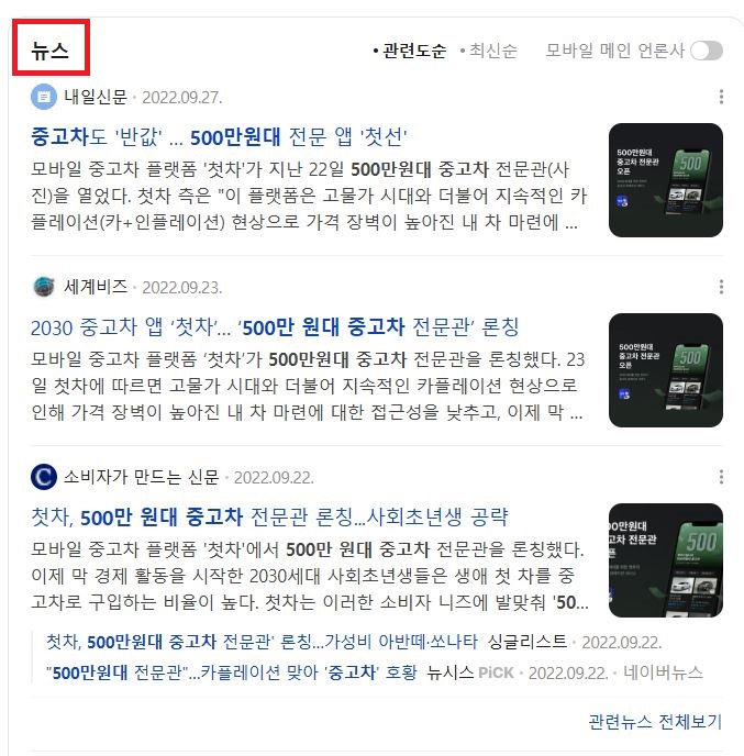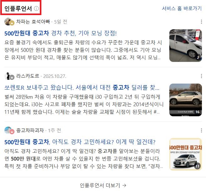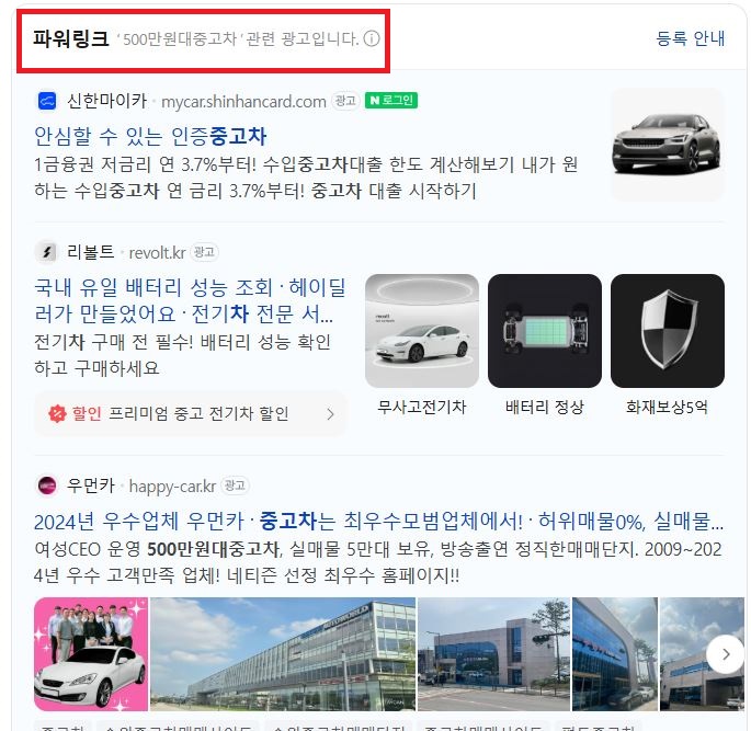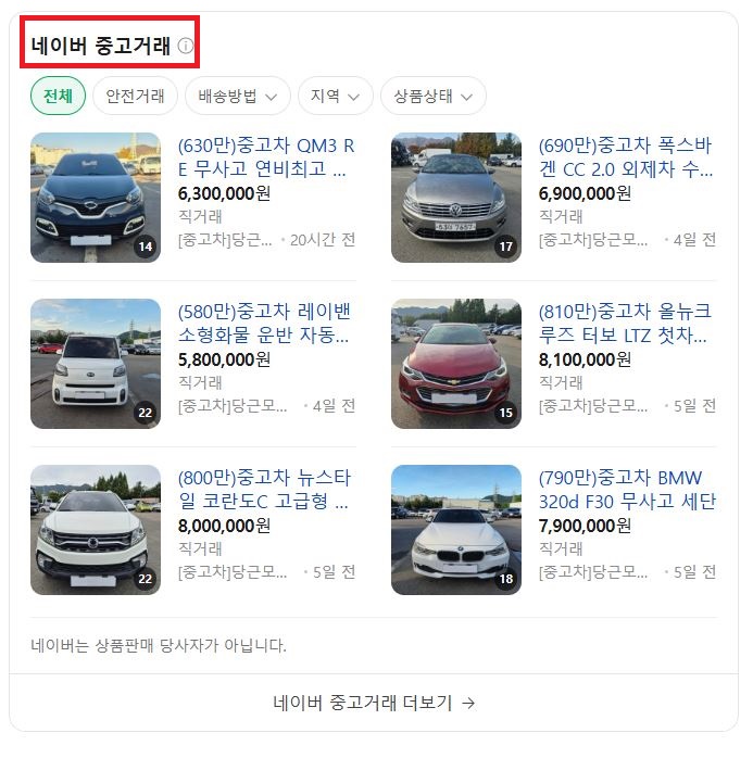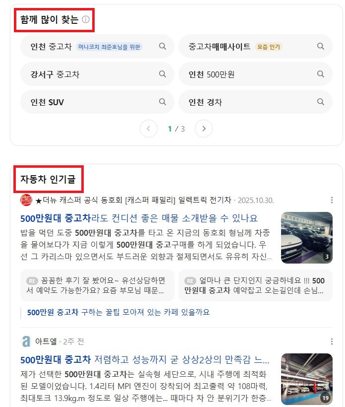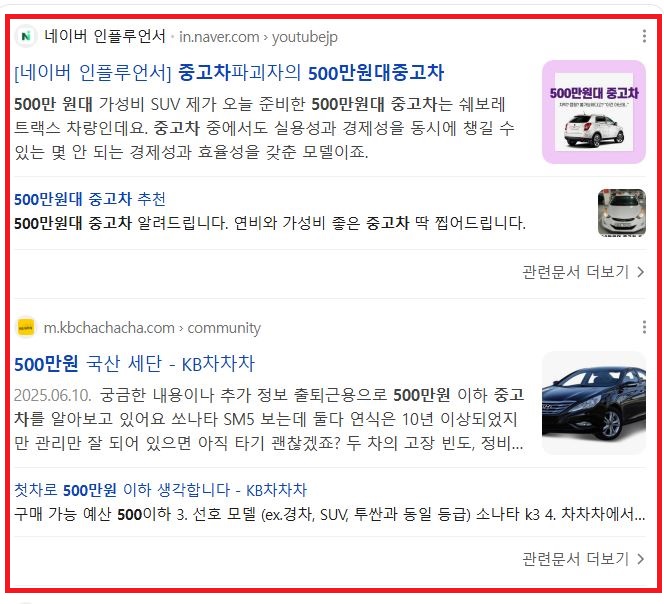 이게 무슨 말이냐면 ‘500만원대중고차’를 검색하면