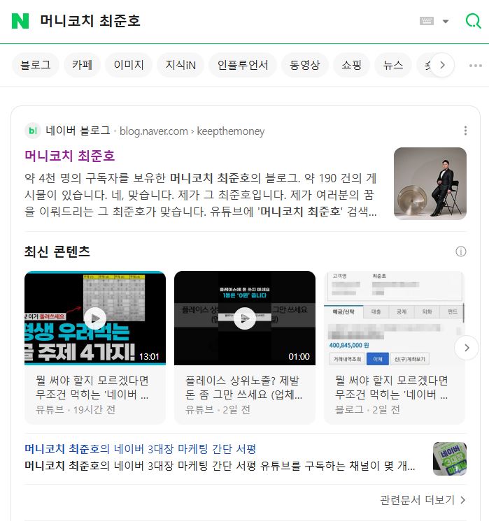 지금 네이버 검색창에 ‘머니코치 최준호’를 검색해 보세요.