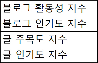 블로그 4대 지수를 보면 ‘블로그 활동성 지수’라는 것이 있습니다. 블로그 활동성 지수란 블로그 운영 기간, 게시글 수, 글쓰기 빈도, 최근 활동성 등을 중점으로 보는 지표를 말하죠.