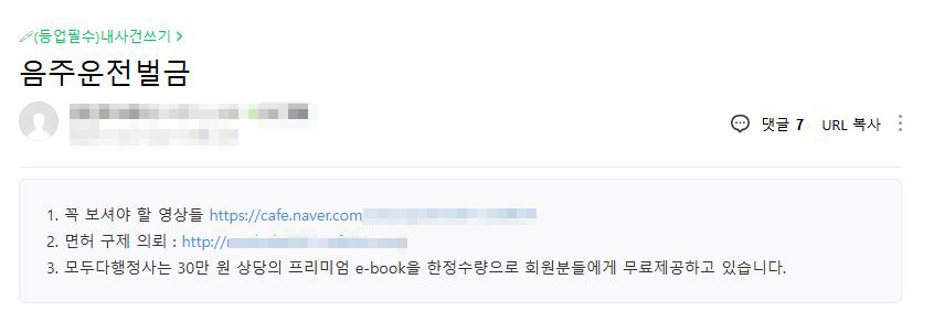 이런 글은 네이버 검색에는 안 뜰 수 있습니다. 하지만 내 카페에 우연히 들어온 방문자에게는 치명적인 미끼가 됩니다. 이 내용을 확인하려면 가입을 안 할 수가 없는 거죠.