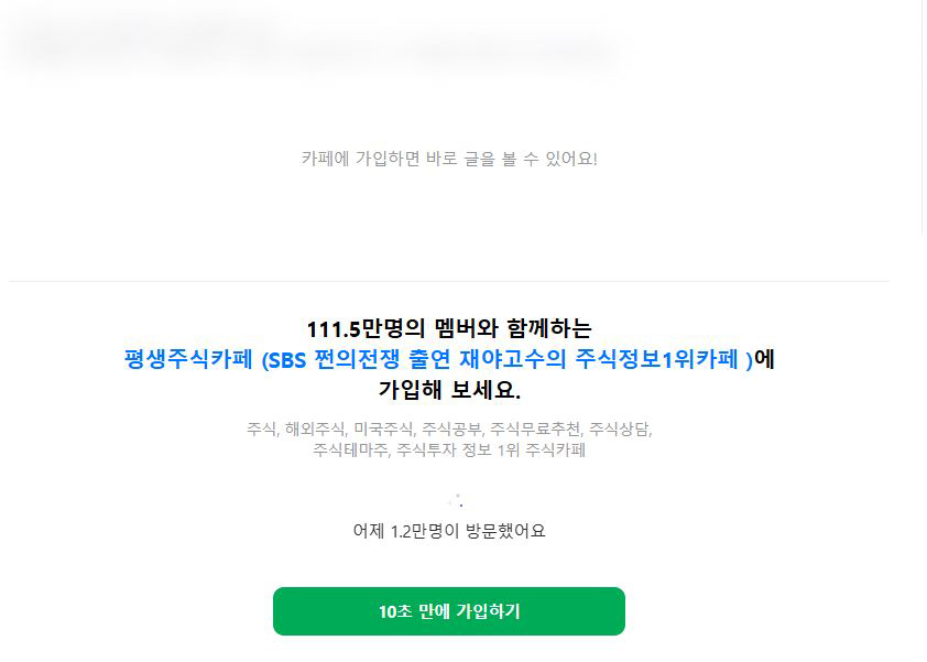 ‘카페에 가입한 회원만 볼 수 있습니다’ 이 멘트가 뜨면서 가입을 유도할 수 있습니다.