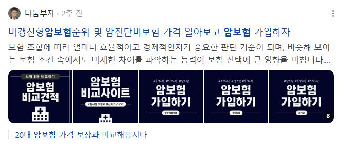 카페 문제였던 거죠. 바로 저한테 씨랭크 카페 구입 후 거의 모든 보험 키워드 노출시키며 재미를 쏠쏠하게 보고 계십니다.