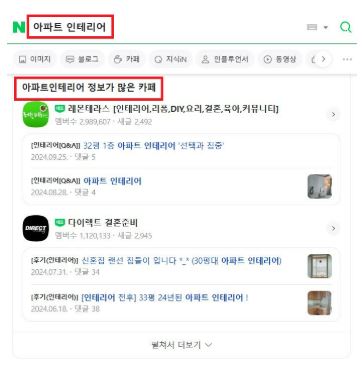 네이버 카페는 네이버의 또 다른 검색창의 역할을 하고 있습니다.