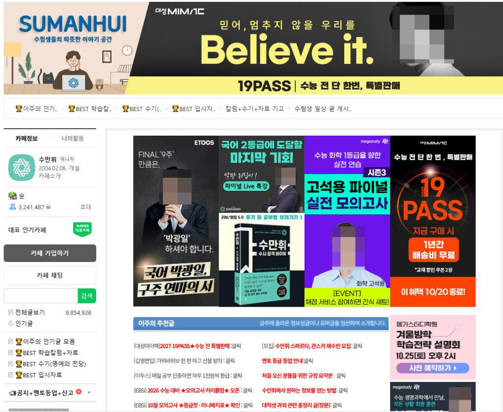 ‘수만휘’ – 수능 관련 커뮤니티. 여기는 더 하죠. 운영자가 아무것도 하지 않아도 전국 수험생들이 모여서 ‘이 인강 강사님 어때요?’, ‘이 문제집 풀어보신 분?’이라며 자기들끼리 정보를 교환하고 평가합니다. 왜? 대학 입시라는 너무나도 절박하고 ‘공통된’ 목표가 있으니까요. 이런 강력한 공통점 앞에서는 카페 주인의 역할이 거의 필요 없을 정도입니다.