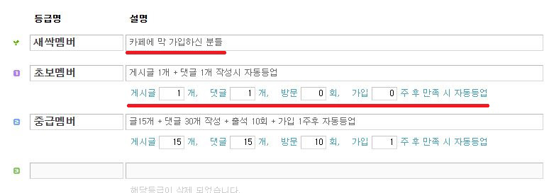 카페 회원들에게 어느 정도의 강압성은 필요합니다. 그 강압성을 자연스레 하기 위해선 이 등업 제도를 활용해 보세요.