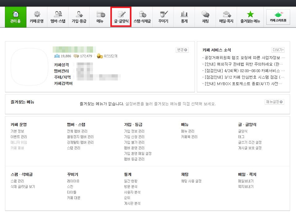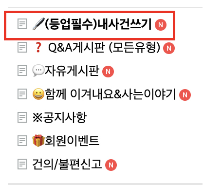 게시판 안내는 이런 식으로 이벤트, 카페 홍보를 넣는 것이 좋고
