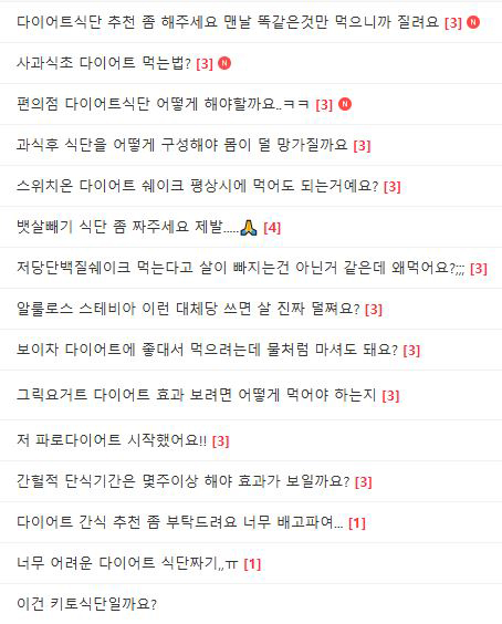 다이어트식단 추천, 사과식초 다이어트, 편의점 다이어트, 저당 단백질쉐이크 등이 올라오네요