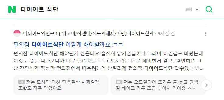 그 결과? 다이어트 식단 검색 시 1위에 당당히 노출되어 있습니다.