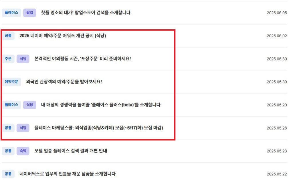 보세요. 5월 말부터 네이버는 ‘외식업’에 대한 공지사항을 연달아 쏟아냈고