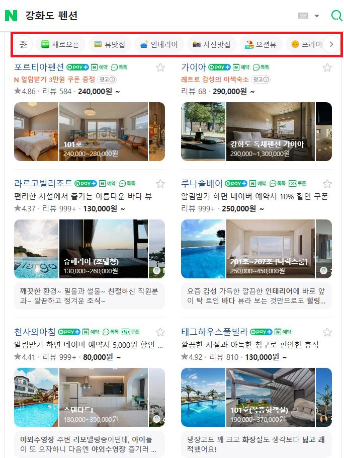 지금 바로 네이버에 ‘강화도 펜션’ 키워드를 검색해 보면 아주 흥미로운 현상을 발견할 수 있습니다. 혹시 눈치채셨나요?