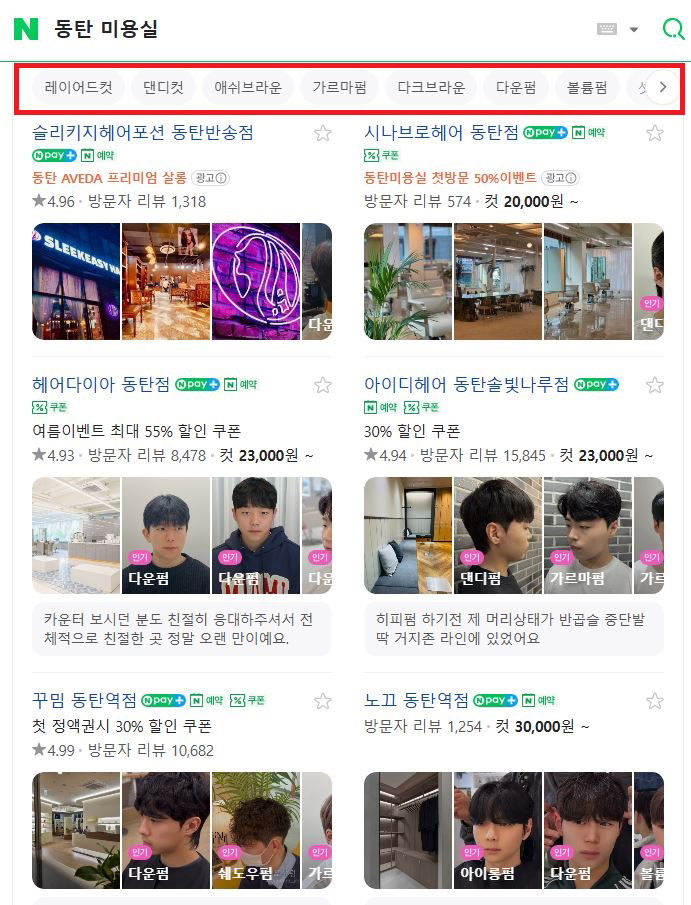 미용실도 있네요 레이어드컷, 댄디컷, 애쉬브라운 등…