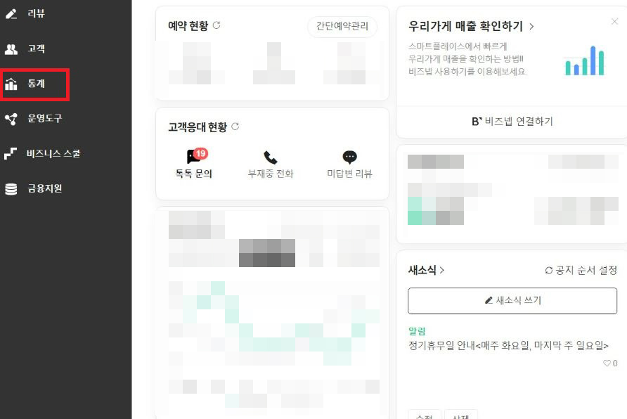 왼쪽 ‘통계’ 버튼을 눌러주세요