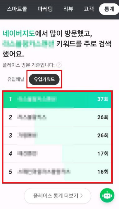 내 네이버 플레이스 통계, 유입 키워드에 허위 키워드가 들어오고 있다면 플레이스에 문제가 생기고 있다는 뜻이다.
