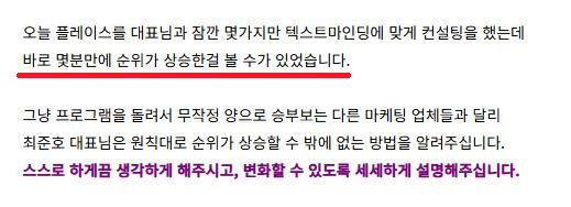 심지어 이분은 컨설팅에서 배운 내용을 그대로 본인의 다른 매장에 적용만 했을 뿐인데, 단 몇 시간 만에 순위가 전부 올라왔습니다.