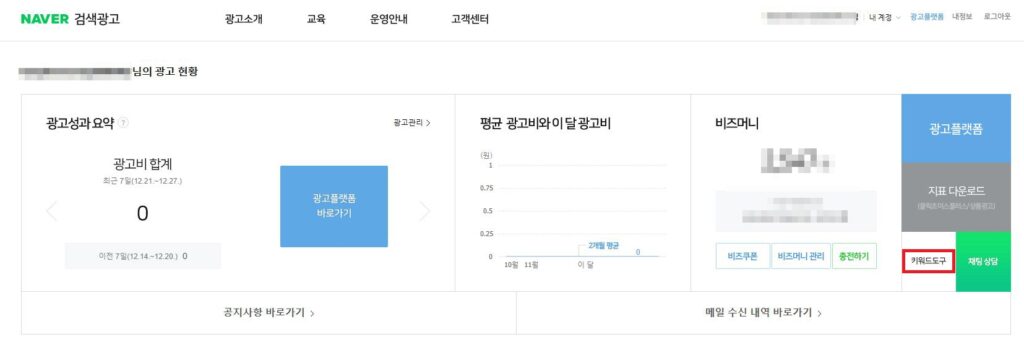 그러면 이 화면이 나올 텐데 로그인 후 ‘키워드 도구’를 클릭