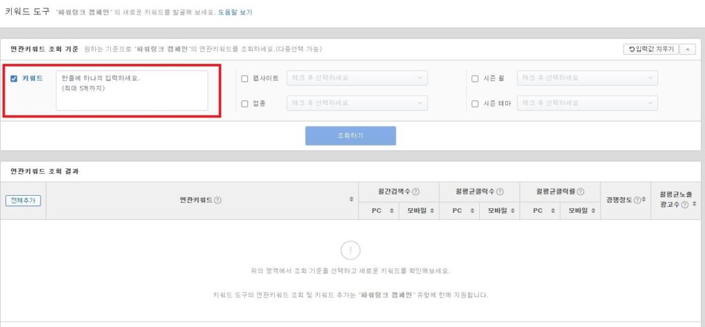 여기서 내가 원하는 키워드를 검색해 주시면 됩니다.