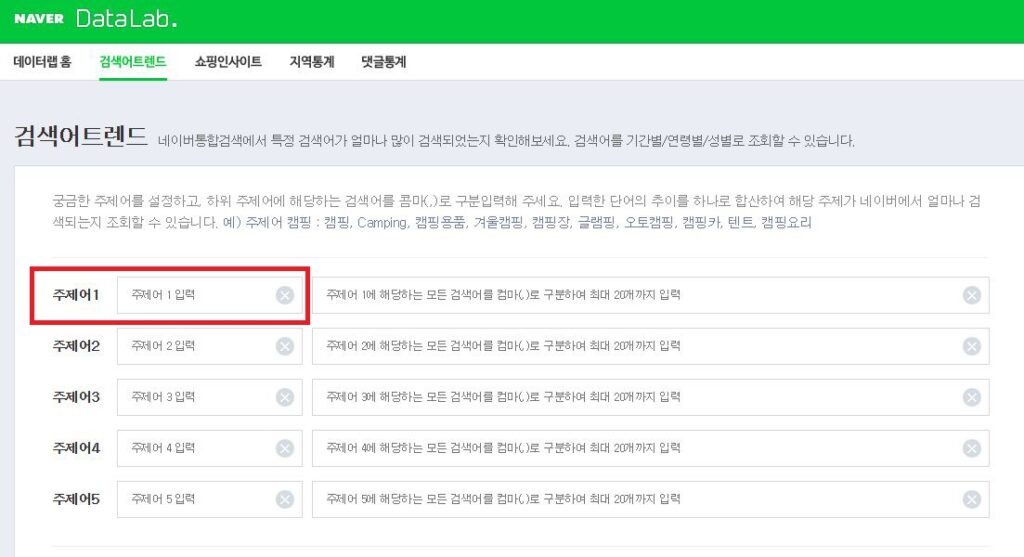 그러면 이런 화면이 뜰 텐데 여기 주제어 1에 내가 원하는 키워드를 검색해 주시면 됩니다.