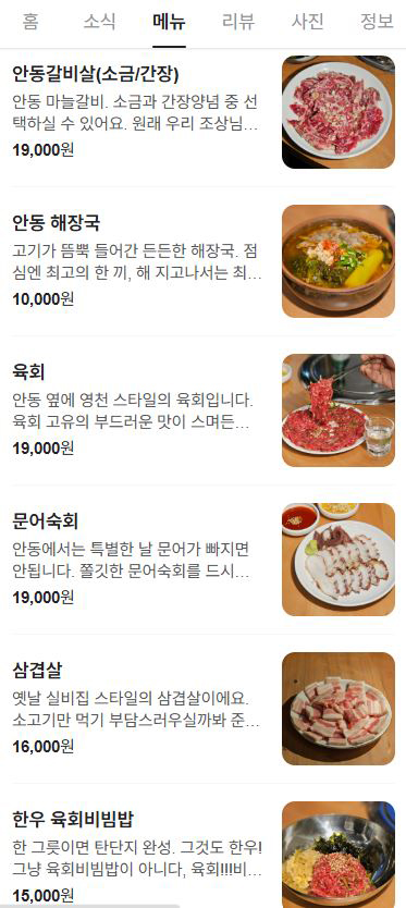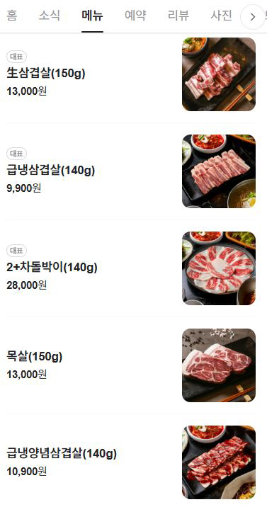 대부분의 플레이스 메뉴판은 이 플레이스처럼 그냥 가격표와 다를 바 없이 세팅합니다. ‘삼겹살 15,000원’, ‘아메리카노 4,000원’ 이런 식으로요.