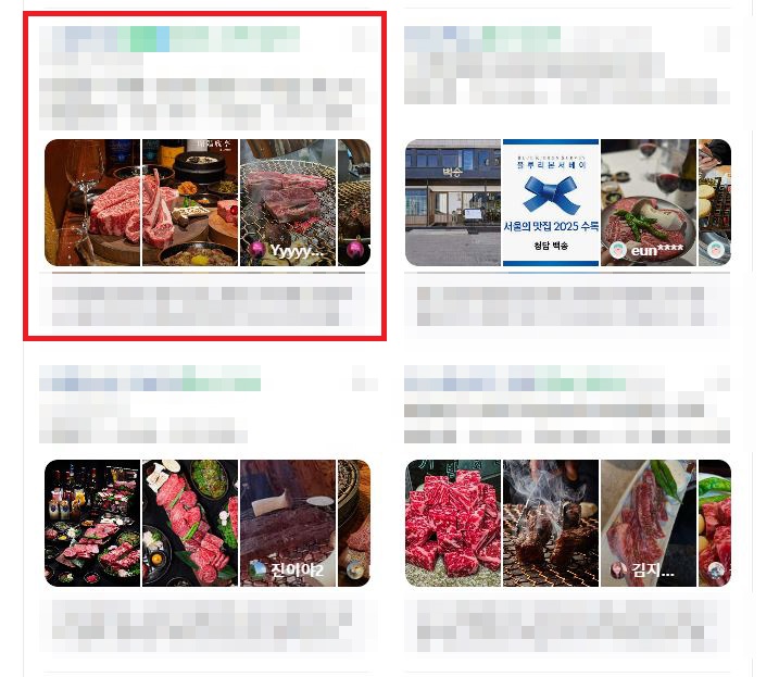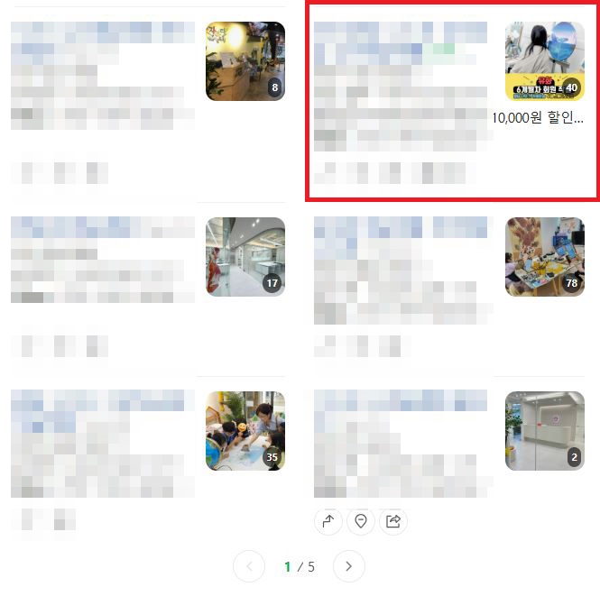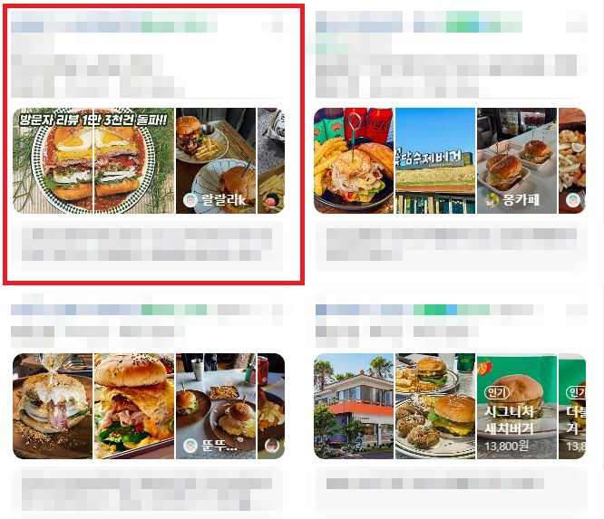 이런 식으로 1장 사진만 나오는 업종, 키워드는 이 기법 쓰시면 안 됩니다. 반쪽만 나오기 때문에 오히려 효과가 떨어질 수 있습니다. 이 점만 주의해 주세요.